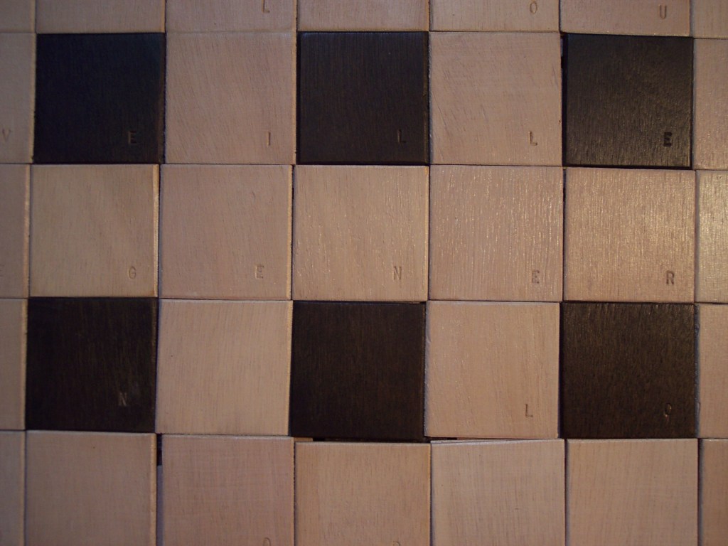 J’attribue une couleur aux carrés de la ligne d’horizon et au mot qui la compose. Ainsi, les lettres de ce mots seront distribuées différemment dans l’espace du tableau pour chaque nouvelle phrase. Ligne d’horizon brisée, espace redistribué.