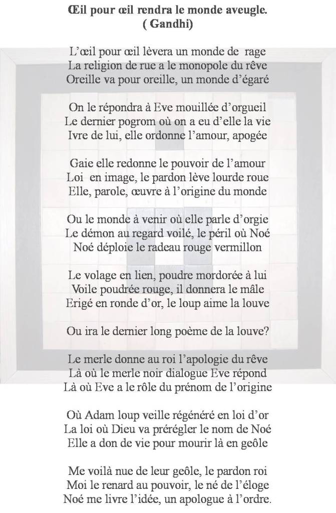 L’organisation en texte accentue le sens de chacune et leur confère une texture subtile commune. Tissages de lettres, de mots, de phrases; textiles contextuels et poétiques. La matière se forme de sonorités et de rythmes, de pensées et de souffle.